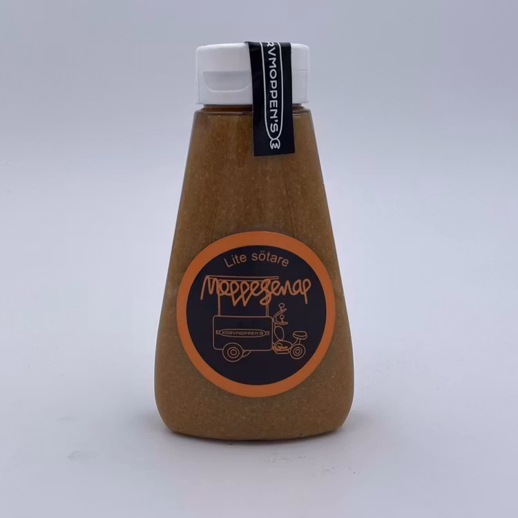 Moppesenap - Söt 40 SEK Lägg i korgen Dela Artikelnummer: 6 Leverantör: Korvmoppen Information ProduktdetaljerSmakrik söt senap lite söt enligt Korvgubbens hemliga recept. Tillverkas i Västervik. Cirka 250 gram.Ingredienser: senapsfrö, socker, ättika, salt och kryddor.